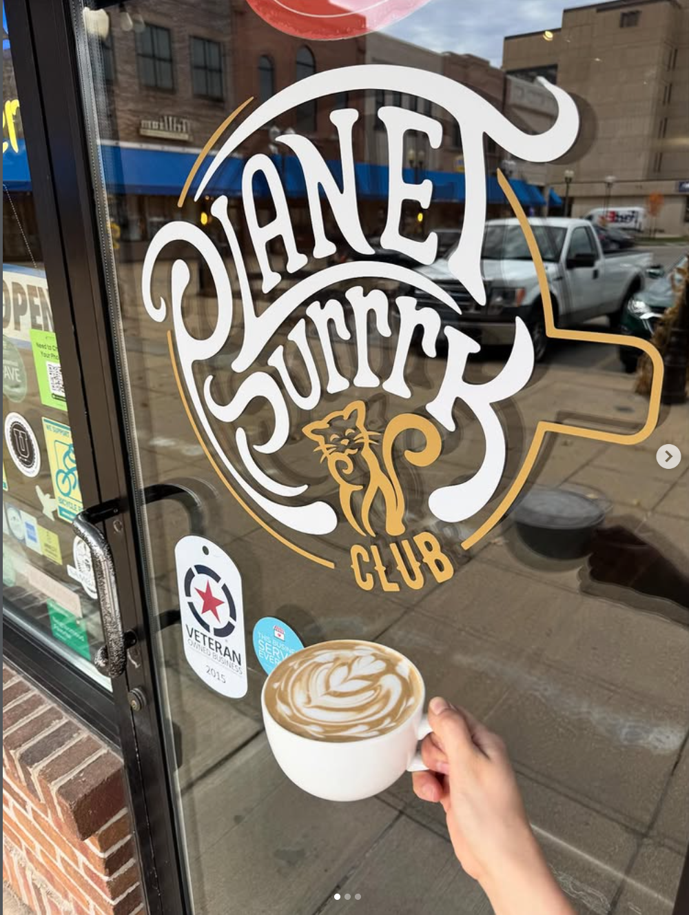 Planet Perk isn't just a coffee shop--it's a mission-driven business dedicated to fostering community, supporting veterans, and creating a welcoming, positive experience in downtown Oshkosh... with the added joy of adorable feline friends.