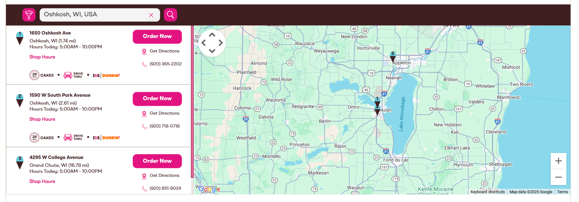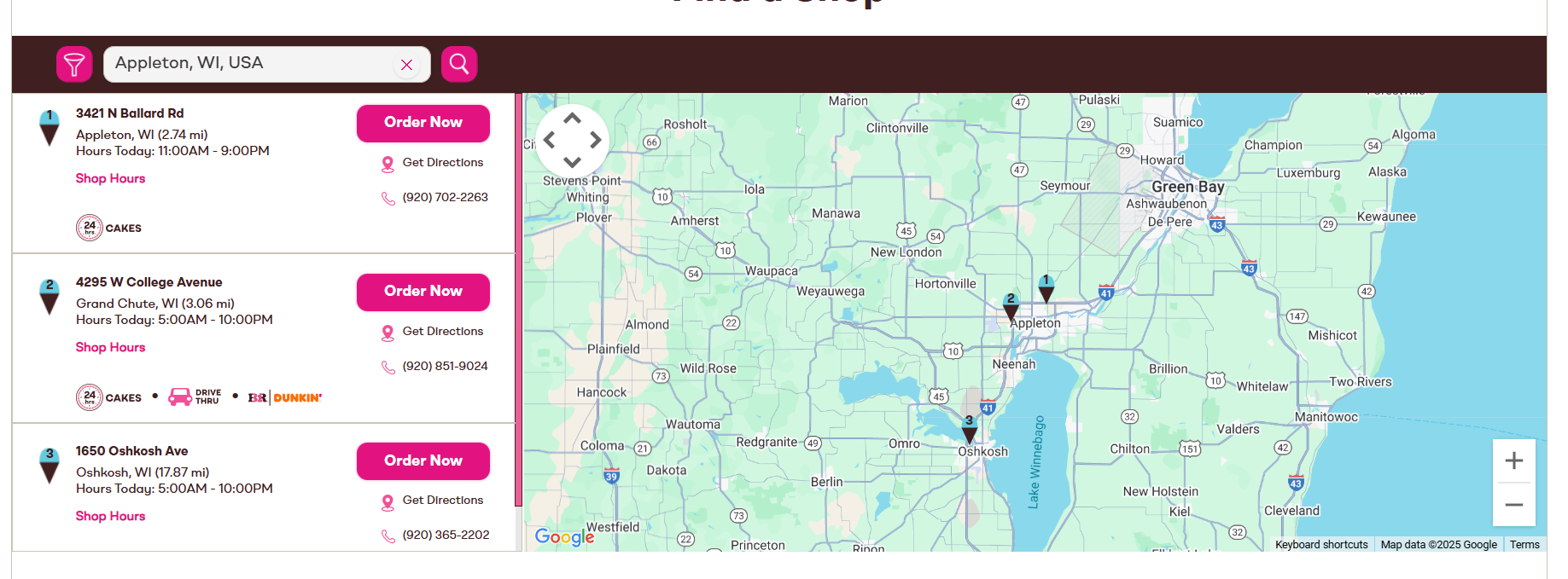 TMart Operations is a locally owned and operated Dunkin' and Baskin-Robbins franchise that focuses on providing outstanding guest experiences. Our Dunkin' locations provide a variety of signature drinks, coffee, espresso, breakfast sandwiches and more! Our Baskin-Robbins locations provide a classic ice-cream parlor experience, complete with scoops, sundaes, cones, novelties and custom ice cream cakes. All Big Deals certificates can be used at any of our Oshkosh and Appleton, WI locations. Not valid on online, delivery or mobile orders.